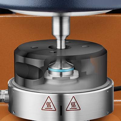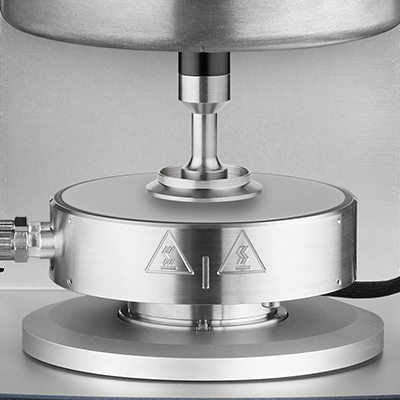 Advanced, Standard and Stepped Peltier Plates offer a temperature range of -40 °C* to 200 °C, heating rates up to 50 °C/min, and temperature accuracy of 0.1 °C. Four Peltier heating elements are placed directly in contact with a thin, 80 mm diameter, copper disc with an extremely rugged, hardened surface. A platinum resistance thermometer (PRT) is placed at the exact center, ensuring accurate temperature measurement and control. The unique design provides for rapid, precise, and uniform temperature control over the entire 80 mm diameter surface. This allows for accurate testing with standard geometries up to 50 mm in diameter. *with appropriate counter-cooling