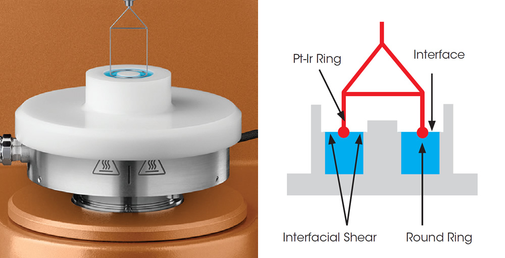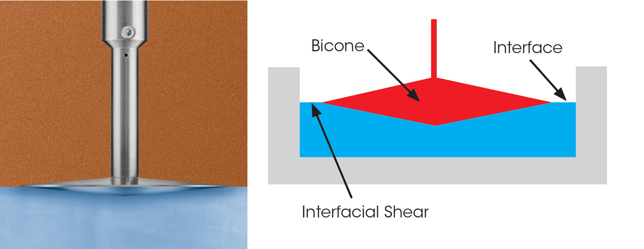 Rheometers are typically used for measuring bulk or three-dimensional properties of materials. In many materials, such as pharmaceuticals, foods, personal care products and coatings, there is a two-dimensional liquid/liquid or gas/liquid interface with distinct rheological properties.